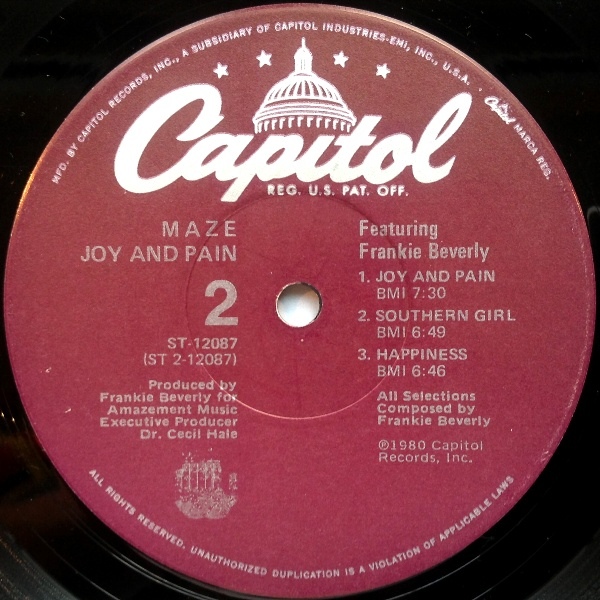 Maze Joy and Pain Featuring Frankie Beverly Capitol Records1980 LP